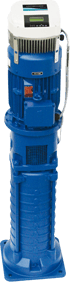 Vertikale Mehrstufenpumpe mit geschlossenen radialen Laufrädern in Blockbauweise mit direkt angebautem IEC Normmotor inkl. Hydrovar-Regeleinheit für automatische Druck-, Differenzdruck- oder Mengenregelung. Radiales mediumsgeschmiertes Gleitlager im Eintrittsgehäuse der Pumpe. Saugstutzen und Druckstutzen radial, um 90° drehbar. Die Baureihe erfüllt die Anforderung der ISO 5199/EN 25199.